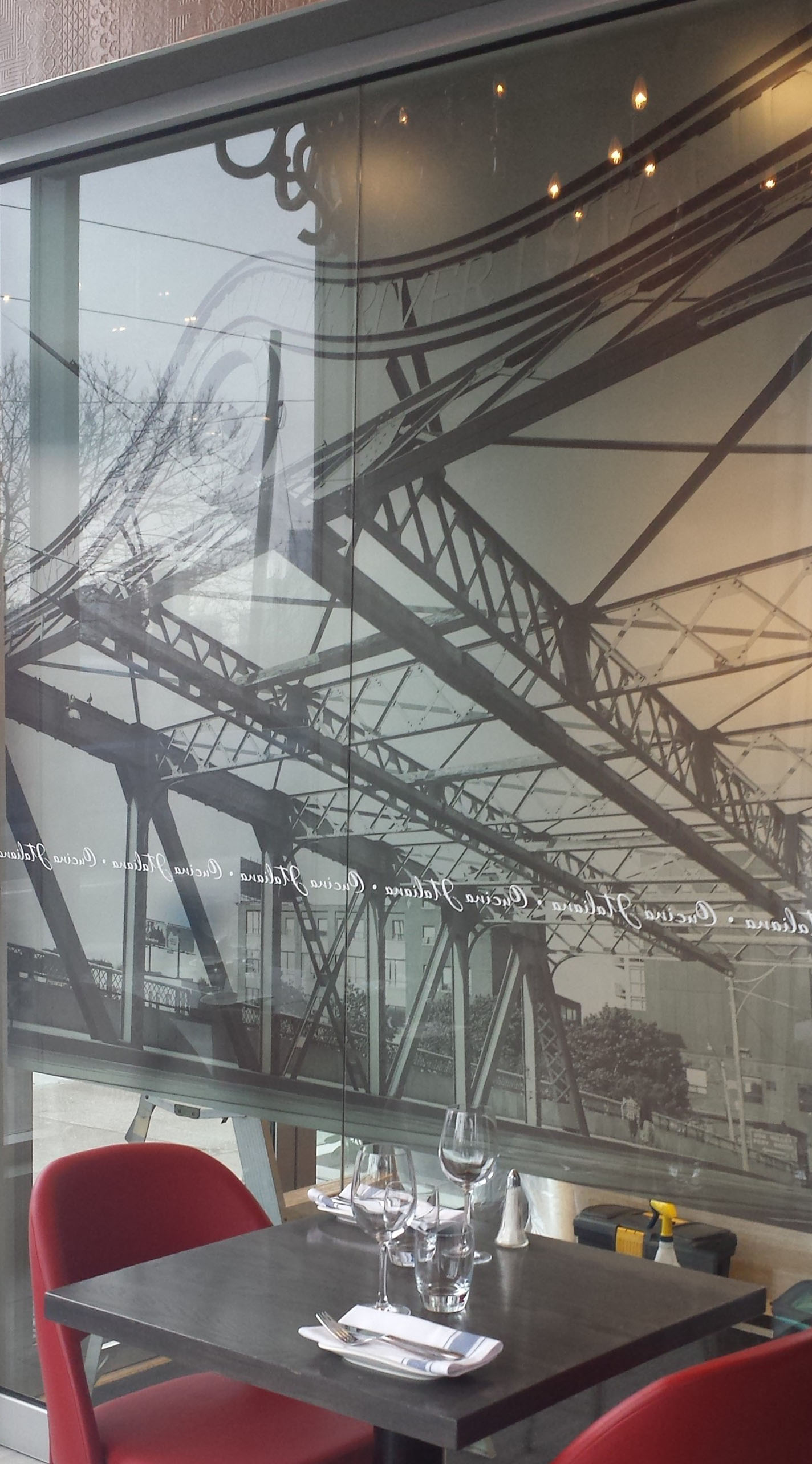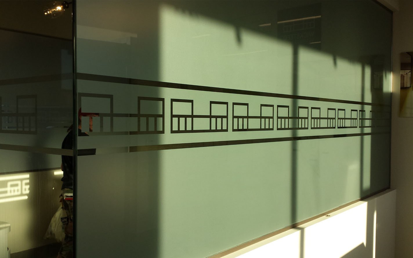 Wilcox supplies and installs various window films. We offer standard frosted vinyl as well as 3M Fasara windows films. We print onto opaque window films, for full window graphics, as well as perforated film that can be installed to the inside or outside of glass. We also print directly onto frosted and clear vinyl to create interesting transparencies.
